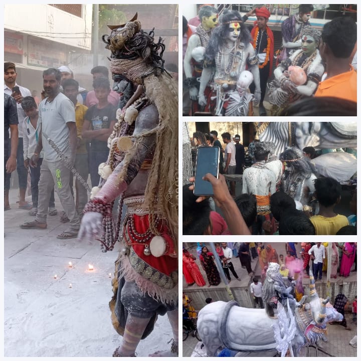 *भूत -प्रेत नर्तकियों नन्दी की झांकियों का हुआ रामेश्वर बाजार का भ्रमण।हजारों की भीड़ उमड़ी देखने।*रामेश्वर,वाराणसी।* श्री रामेश्वर महाश्मशान नाथ बाबा का भव्य वार्षिक श्रृंगार विधि -विधान से सम्पन्न हुआ। शाम की बेला में भूत -प्रेत,नर्तकियों,नन्दी जी की झांकी निकाली गई जो आकर्षण का केंद्र रहा। हजारों की भीड़ देखने के लिए देर रात तक डटी रही।रामेश्वर महाश्मशान बाबा के वार्षिक श्रृंगार में प्रमुख रूप से राजकुमार चौधरी,सीजई चौधरी,श्यामबाबू,ऋषिकेश चौधरी,परमानन्द चौधरी,रोहित त्रिपाठी,विशाल कुमार गुप्ता,अमर बहादुर सिंह,कमलेश,बाबू चौधरी,आकाश,प्रदुम गिरी,शनि चौधरी,परमेश कुमार,शनि,हलचल चौधरी,राकेश गौंड़,अनुज चौधरी,साहिल,दिलीप कुमार,अमित गुप्ता व राहुल कुमार सहित पूजन समिति के अन्य युवाओं का सहयोग रहा।समिति की ओर से सभी भक्तों को प्रसाद वितरित किया गया।
