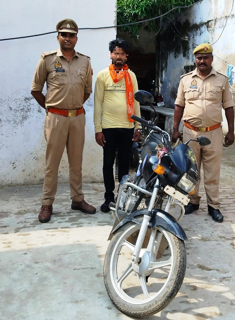 वाराणसी- पुलिस आयुक्त महोदय कमिश्रेरट वाराणसी द्वारा वाहन चोरी की बढ़ती घटनाओं पर प्रभावी अंकुश लगाये जाने एवं चोरी हुए वाहनों की बरामदगी हेतु दिये गये निर्देशों अनुपालन पुलिस उपायुक्त, काशी जोन कमिश्नरेट वाराणसी के निर्देशन में थाना लंका पुलिस द्वारा सीसीटीवी फूटेज एवं मुखबिर खास की सूचना के आधार पर मु0अ0सं0- 361/2023 धारा 379/411 भादवि थाना लंका से सम्बन्धित एक व्यक्ति को दिनांक 14.09.2023 को समय 10.50 बजे जजेज गेस्ट हाउस के पास से मय वाहन के घेरघार कर पकड़ लिया गया जिसके कब्जे से बरामद मोटरसाइकिल के सम्बन्ध में कागजात मांगा गया तो बताया कि साहब ये मोटरसाइकिल चोरी की है जिसको मैंने दो तीन दिन पहले बालाजी एक्सटेंशन से चुराया था। नाम पता पूछने पर अपना नाम राहुल जायसवाल पुत्र स्व मुन्ना जायसवाल निवासी ग्राम सिहोरिया थाना चाँद जनपद कैमूर बिहार उम्र करीब 28 वर्ष बताया। पकड़े गए अभियुक्त को आपराध का बोध कराते हुए हिरासत पुलिस में लिया गया। आवश्यक विधिक कार्यवाही की जा रही है।गिरफ्तारी / बरामदगी करने वाली पुलिस टीम में उ0नि0 रामपूजन बिन्द,उ0नि0 जितेन्द्र कुमार मौर्य, चौकी प्रभारी नगवा,का0 आदित्य कुमार तिवारी,का0 विजय कुमार शुक्ला, थाना लंका, कमिश्नरेट वाराणसी शामिल रहे।