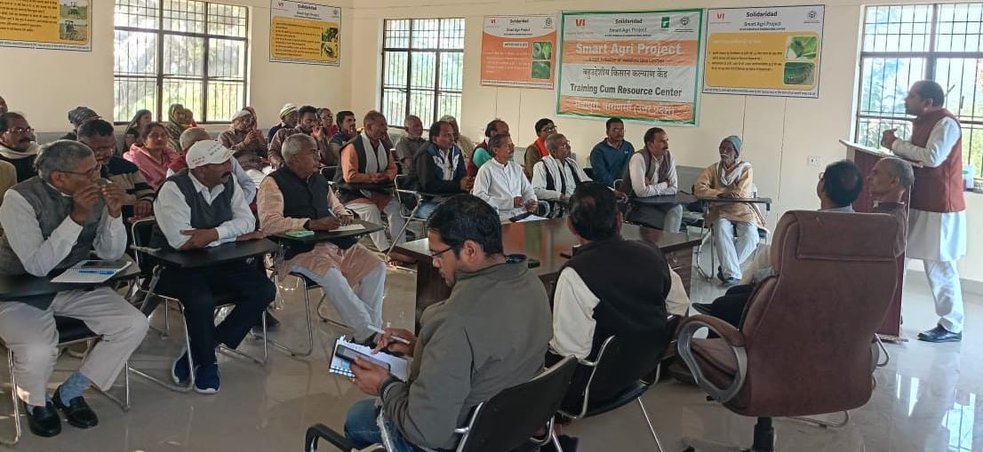 सेवापुरी/वाराणसी। गौ आधारित प्राकृतिक खेती के माध्यम से किसान अपनी आय को बढाकर,प्रकृति,पर्यावरण,मिट्टी व मानव स्वास्थ्य को ठीक कर सकते हैं।इतना ही नहीं बल्कि गौ आधारित प्राकृतिक खेती किसानों की आत्मनिर्भरता की गारंटी है।उक्त बातें लोक भारती के राष्ट्रीय सम्पर्क प्रमुख एवं कृषक समृद्धि आयोग के सदस्य श्रीकृष्ण चौधरी ने सोमवार को सेवापुरी ब्लाक सभागार में प्राकृतिक खेती पर आधारित किसान गोष्ठी में किसानों को सम्बोधित करते हुए कही।उन्होंने कहा कि देशी गाय के गोबर,गौमूत्र के द्वारा जीवामृत,बीजामृत,घन जीवामृत व कीट नियंत्रक बनाकर किसान मृदा की उर्वरा शक्ति को बढ़ाकर अधिक उत्पादन ले सकते हैं।प्राकृतिक कृषि पद्धति से उत्पादित खाद्य पदार्थ की गुणवत्ता पौष्टिकता एवं स्वाद अधिक होने के कारण बाजार में अधिक मूल्य भी प्राप्त हो रहा है।प्राकृतिक कृषि संगोष्ठी में पिंण्ड्रा के प्रगतिशील किसान हरिशंकर सिंह,ओमप्रकाश पटेल,सेवापूरी की सुमन देवी,वीरेंद्र सिंह,उदयभान सिंह,जयप्रकाश सिंह,प्रेम शंकर पटेल,अनूप द्विवेदी,रमाशंकर सिंह ने प्राकृतिक खेती से सम्बंधित अपना अनुभव बताया।इस दौरान सहायक विकास अधिकारी कृष्ण कुमार सिंह,बीटीएम देवमणि त्रिपाठी,लोक भारती से सेवापुरी ब्लॉक के संरक्षक रामआसरे सिंह,पूर्व एडीओ कृषि दिनेश प्रताप सिंह,मनोज बरनवाल,शैलेश कुमार,राहुल यादव,दीपक कुमार मौर्य,हिमांशु कुमार स्मिता राय,श्यामबिहारी मौर्य,संजय सिंह,ओम प्रकाश वर्मा,लक्ष्मण प्रसाद,बच्चलाल मौर्य आदि उपस्थित रहे।