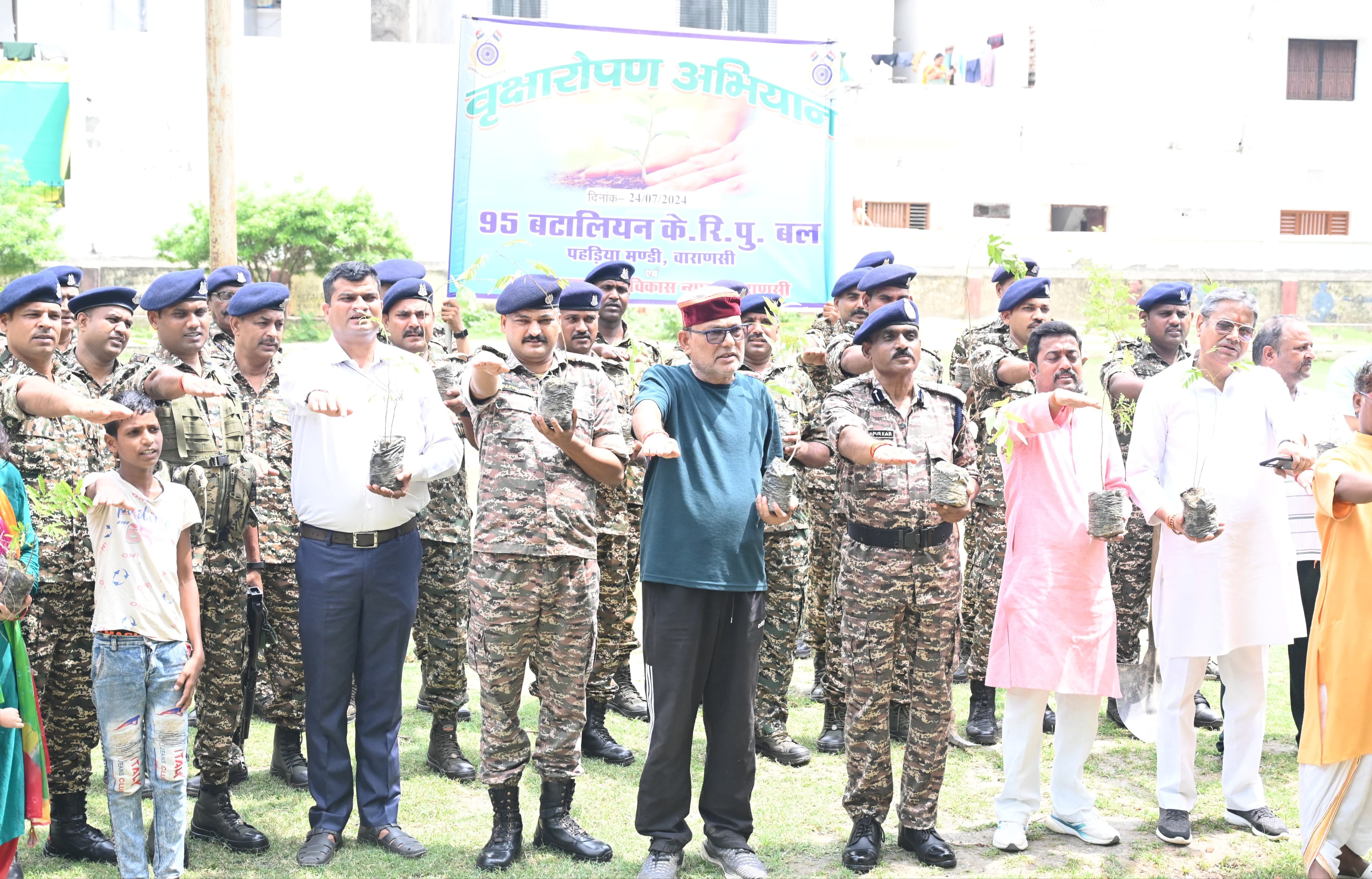 वाराणसी आज दिनांक 24/7/2024 को कमांडेंट 95 बटालियन केंद्रीय रिजर्व पुलिस बल के दिशा निर्देश में पर्यावरण विद, गंगा हरितिमा अभियान के ब्रांड अंबेसेडर अनिल कुमार सिंह के मिशन एक करोड़ पौधारोपण के तहत् आज शिव पूरी कॉलोनी और लंका के माधव मार्केट के पार्क में संयुक्त रूप से सीआरपीएफ एवं सृजन सामाजिक विकास न्यास के अध्यक्ष एवं सदस्यों द्वारा बृहत रूप से पौध रोपण हुआ, कार्यक्रम के मुख्य अतिथि , CRPF के राजेश्वर बालापुरकर 95 बटालियन के कमांडेंट महोदय, अध्यक्षता नगवां वार्ड के लोकप्रिय पार्षद रवीन्द्र सिंहजी,साथ में गंगा समग्र के युवा वाहिनी के प्रांतीय अध्यक्ष सौरभ सिंह पटेल ( चिंटू) , अमित मौर्य गायत्री परिवार के सदस्यों व स्थानीय लोगों ने पौधारोपण कर संरक्षण की शपथ ली ।