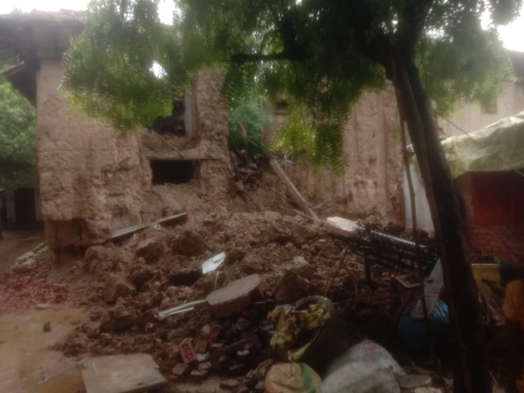 वाराणसी बड़ागांव गंगा कला गांव में बारिश के कारण कच्चे मकान की दीवार गिर गई जिससे राजगीर मिस्त्री सूबेदार पटेल 45 वर्ष एवं उनकी पत्नी संजू के सिर एवं कमर में आई गंभीर चोट, बारिस के चलते गिरी कच्चे मकान की दीवार,चार फीट मिट्टी में दबे दंपत्ति को आसपास के लोगो ने निकाला, दीनदयाल हॉस्पिटल में भर्ती