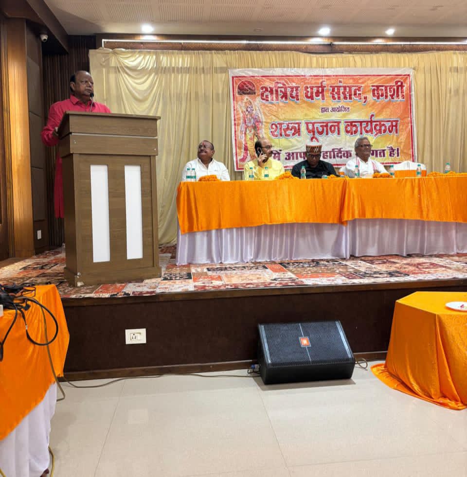 शस्त्र पूजन शक्ति और साहस का प्रतीक है, जो हमें अपने अधिकारों की रक्षा करने और अन्याय के खिलाफ लड़ने के लिए प्रेरित करता है। शस्त्र का विवेक पूर्ण उपयोग हमें शास्त्रों से सीखने को मिलता है इसलिए शस्त्र एवं शास्त्र का सामंजस्य जरूरी है। उक्त बातें कैंटोनमेंट स्थित सूर्या होटल में क्षत्रिय धर्म संसद काशी द्वारा आयोजित शस्त्र पूजन कार्यक्रम में पूर्व कुलपति प्रो. हरेंद्र कुमार सिंह ने बतौर मुख्य अतिथि कहीं।