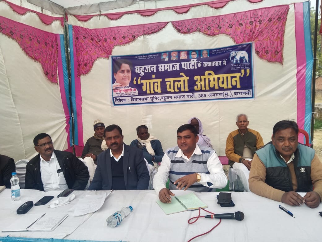 चौबेपुर/ वाराणसी: स्थानीय क्षेत्र के ग्राम पंचायत मुनारी में बहुजन समाज पार्टी के तत्वाधान में गांव चलो अभियान का आयोजन किया गया जिसमें मुख्य अतिथि रहे मा. विजय प्रताप (पूर्व एमएलसी उत्तर प्रदेश मुख्य मंडल प्रभारी वाराणसी, आजमगढ़ मंडल) रहे इस आयोजन में बाबा भीमराव अंबेडकर के बताए गए मार्गो पर चलने के लिए प्रेरित किया गया तथा जिसमें राजेश भारती लक्ष्मण राम सीताराम त्यागी सुभाष शिवनारायण आदि लोग व पार्टी के मंडल अध्यक्ष,कार्यकर्ता तथा ग्रामीण मौके पर शामिल रहे