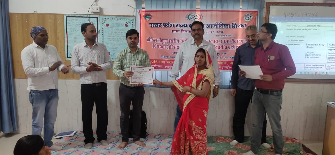 *हरहुआ*। संस्थाओं की सफलता का मूल आधार होता है किये जा रहे कार्यों का अभिलेखीकरण जिससे सारी क्रिया कलापों को एकबद्ध किया जा सकता है।उक्त बातें जिला ग्राम्य विकास संस्थान परमानंदपुर में उत्तर प्रदेश राज्य ग्रामीण आजीविका मिशन अंतर्गत चल रहे जनपद वाराणसी के विकास खण्ड आराजीलाइन से चयनित संकुल समिति के 62 सदस्यों के तीन दिवसीय "संकुल स्तरीय संघ व्यवसाय विकास योजना (BDP) विषयक प्रशिक्षण एवं जनपद चन्दौली के विकास खण्ड सकलडीहा,बरहनी,नियामताबाद,शहाबगंज,नौगढ़,चन्दौली सदर व चहनियां से चयनित 66 ग्राम संगठन पुस्तक संचालकों के पाँच दिवसीय आवासीय प्रशिक्षण सत्र के समापन अवसर पर उपायुक्त स्वतः रोजगार दिलीप कुमार सोनकर ने अपने सम्बोधन में कही।जिला प्रशिक्षण अधिकारी विमल कुमार सिंह ने संकुल समिति के सदस्यों एवं ग्राम संगठन पुस्तक संचालकों को सम्बोधित करते हुए कहा कि किसी भी कार्य में सफलता प्राप्त करने के लिए उसकी कार्ययोजना पर सबसे अधिक ध्यान देना होता है, आप सभी प्रशिक्षण में दी गयी अभिलेखीय जानकारी को अच्छी तरह से सीखें हुए को व्यावहारिक बनाते हुए इसे अपने-अपने संकुल समितियों व ग्राम संगठनों में लागू करें।प्रशिक्षण के दौरान प्रशिक्षक गोपाल पाण्डेय,प्रिंश मिश्रा द्वारा व्यवसाय विकास योजना की प्रक्रिया,ढाँचा व तैयारी के चरण पर विस्तार से जानकारी दी गयी। पंकज कुमार,शशिबाला पाण्डेय व जानकी यादव द्वारा ग्राम संगठन फण्ड,कार्यवाही रजिस्टर,ऋण व ब्याज निकालने का तरीका, वादा पत्र तैयार करना आदि विस्तार से सिखाया गया।प्रशिक्षण में विक्रम सिंह,विवेक कुमार सिंह,अमरनाथ द्विवेदी,मुलायम सिंह यादव,रमेश राव उपस्थित रहे। समापन अवसर पर सभी प्रतिभागियों को सर्टिफिकेट,ग्रुप फोटो व बैग वितरित किया गया। प्रशिक्षण का समापन प्रेरणा गीत के साथ सम्पन्न हुआ।
